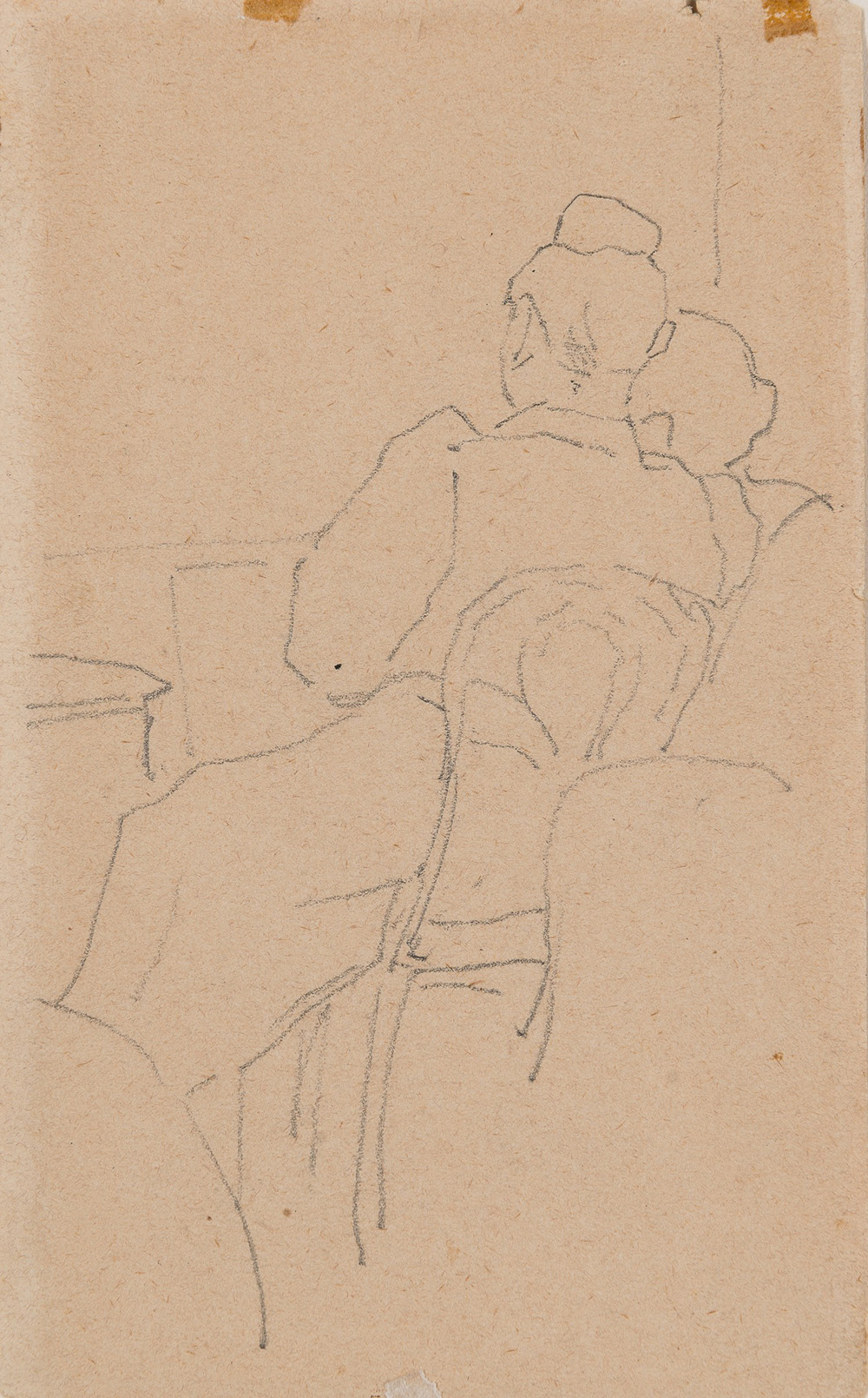 Giovanni Fattori (Livorno 1825 - Firenze 1908) (Attribuito) "Studio per testa di cavallo" bozzetto a matita su carta (cm 8.5x13.5) Sul lato sinistro iscrizione di Giovanni Malesci che così dichiara "disegni di Giovanni Fattori" Al retro: bozzetto a matita "Studio per figure" (difetti) In cornice