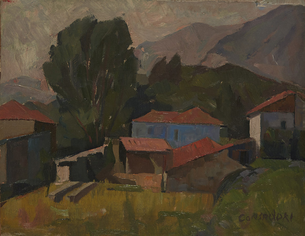 Silvio Consadori (Brescia 1909 - Burano 1994) "Canzo" olio su compensato (cm 35.5x45.5) Firmato in basso a destra Al retro: titolato ed iscritto Provenienza: Galleria d'arte del Grattacielo, Legnano. Cartiglio al retro In cornice