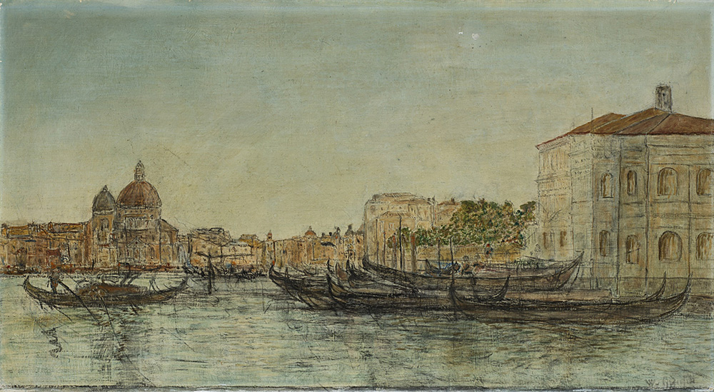 Wilhelm Von Gegerfelt (Goteborg 1844 - Torekov 1920) "Venezia" tecnica mista su tela (cm 31x57) Firmato in basso a destra Al retro: cartiglio In cornice (difetti)