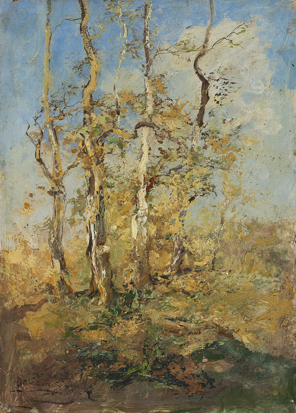 Lotto 2330 | Pompeo Mariani (Monza 1857 - Bordighera 1927) "Alberi spogli" olio su cartone...