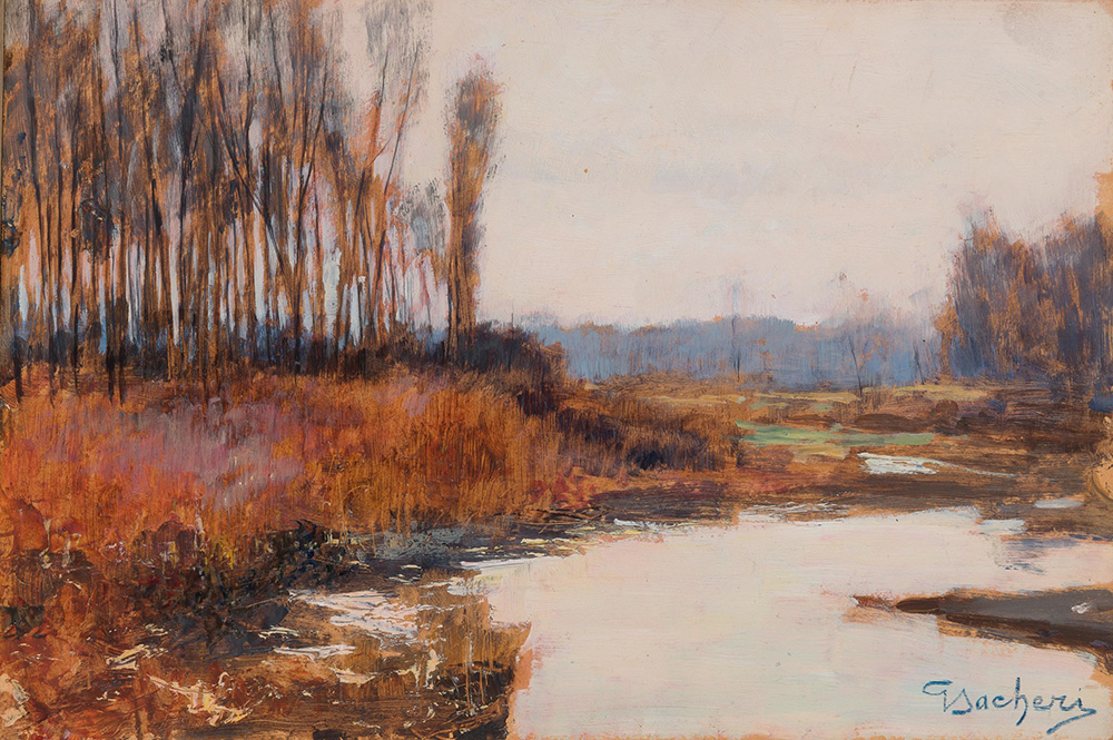 Giuseppe Sacheri (Genova 1863 - Pianfei 1950) "Mattino d'inverno a Frassineto...