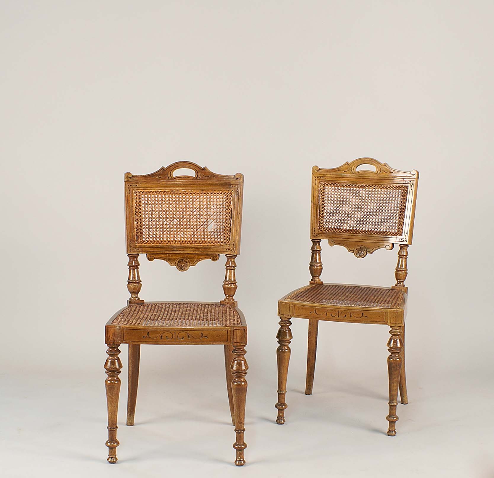 Lotto 599 | Sei sedie in noce con schienali e sedute in paglia di Vienna, Francia, fine...
