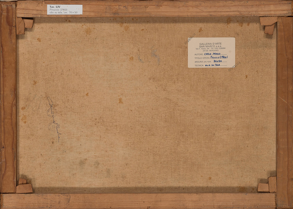 Carlo Prada (Milano 1884 - Santa Margherita Ligure 1960) "Pinuccia" 1960 olio su tela (cm 50x70) Firmato in basso a destra Al retro: timbri e cartiglio Provenienza: Atelier Carlo Prada, timbri al retro; Galleria d'Arte San Marco, Bergamo. Cartiglio e timbri al retro In cornice