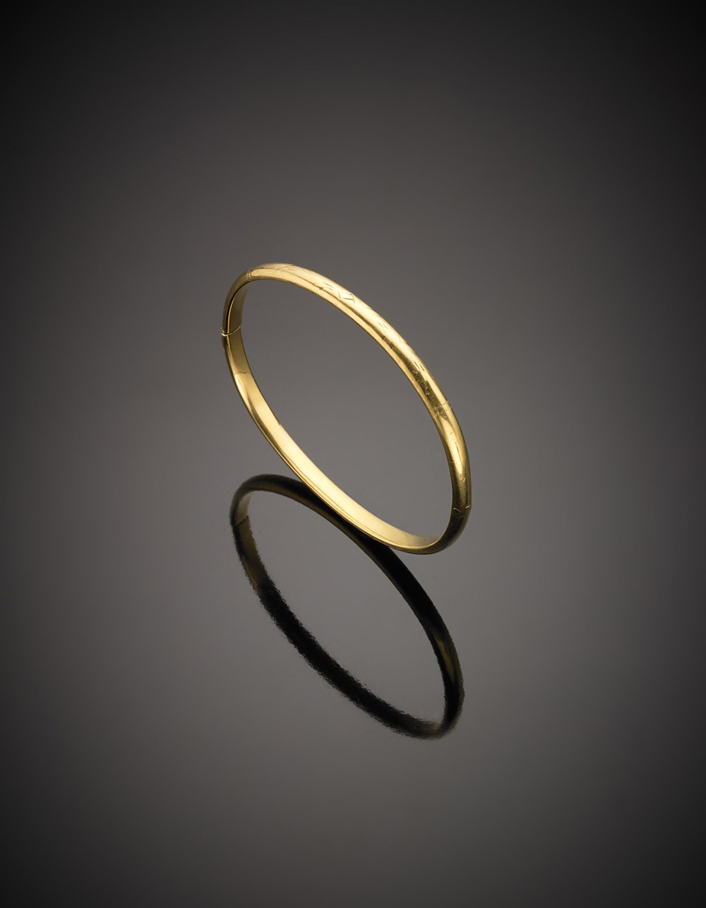 Bracciale rigido in oro giallo con leggere incisioni superficiali, g.8,40,...