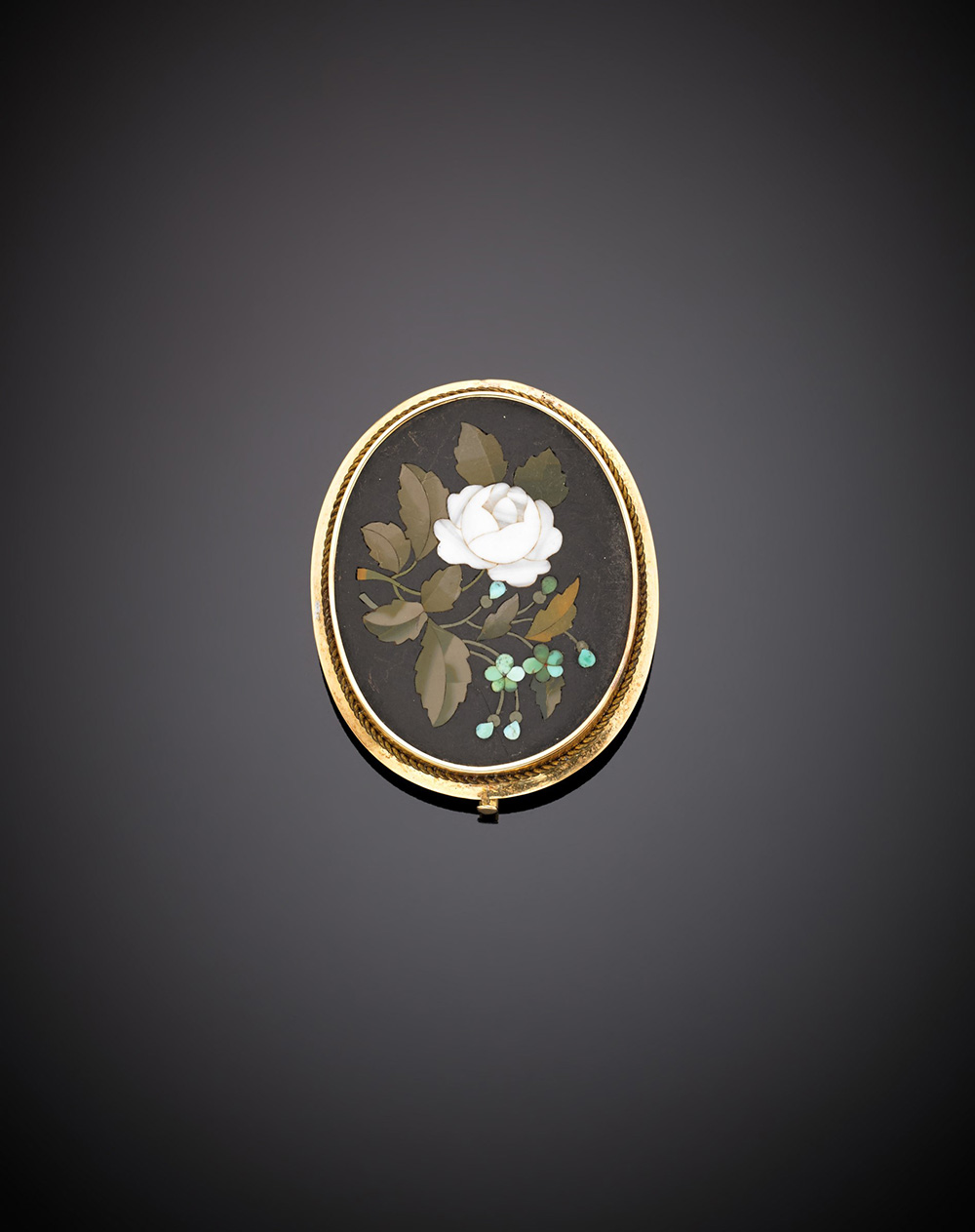Spilla in oro giallo 333/1000 con mosaico floreale, g. 10,40, lungh. 5 circa...