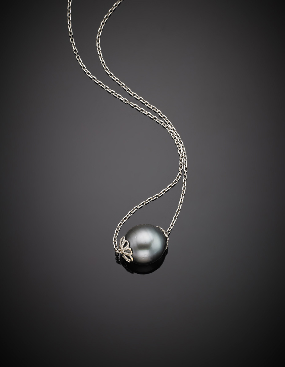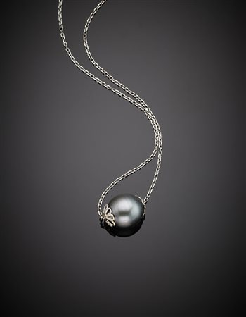 Catenina in oro bianco con al centro una perla nera Tahiti di mm 12,34 circa,...