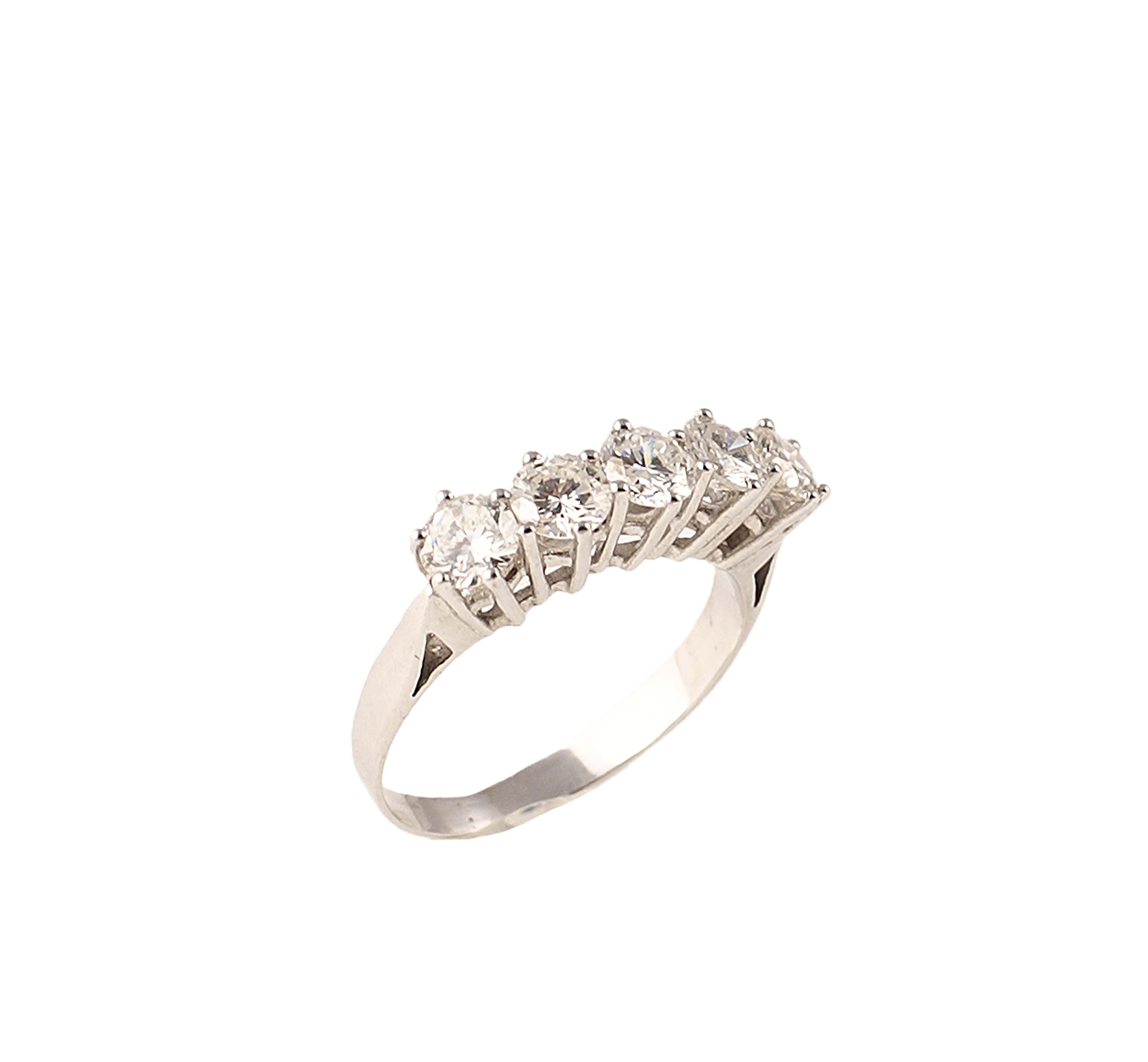 Lotto 627 | Anello riviére in oro bianco 18kt con incastonati cinque diamanti taglio...