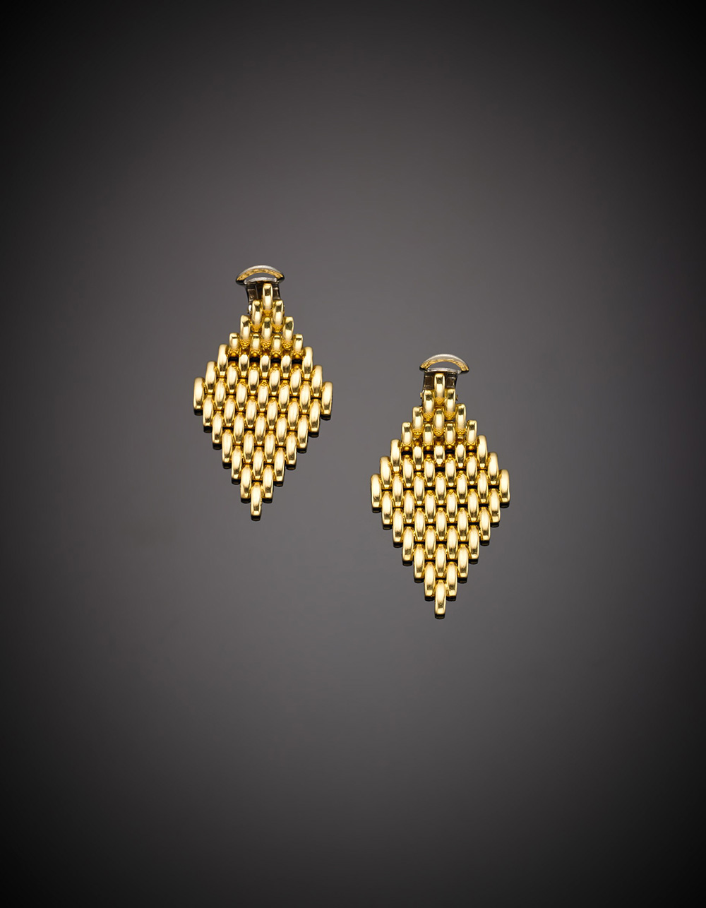 Orecchini romboidali in oro giallo con clip in oro bianco, g.13,60 Yellow gold rhombus earrings, white gold clip, g.13,60