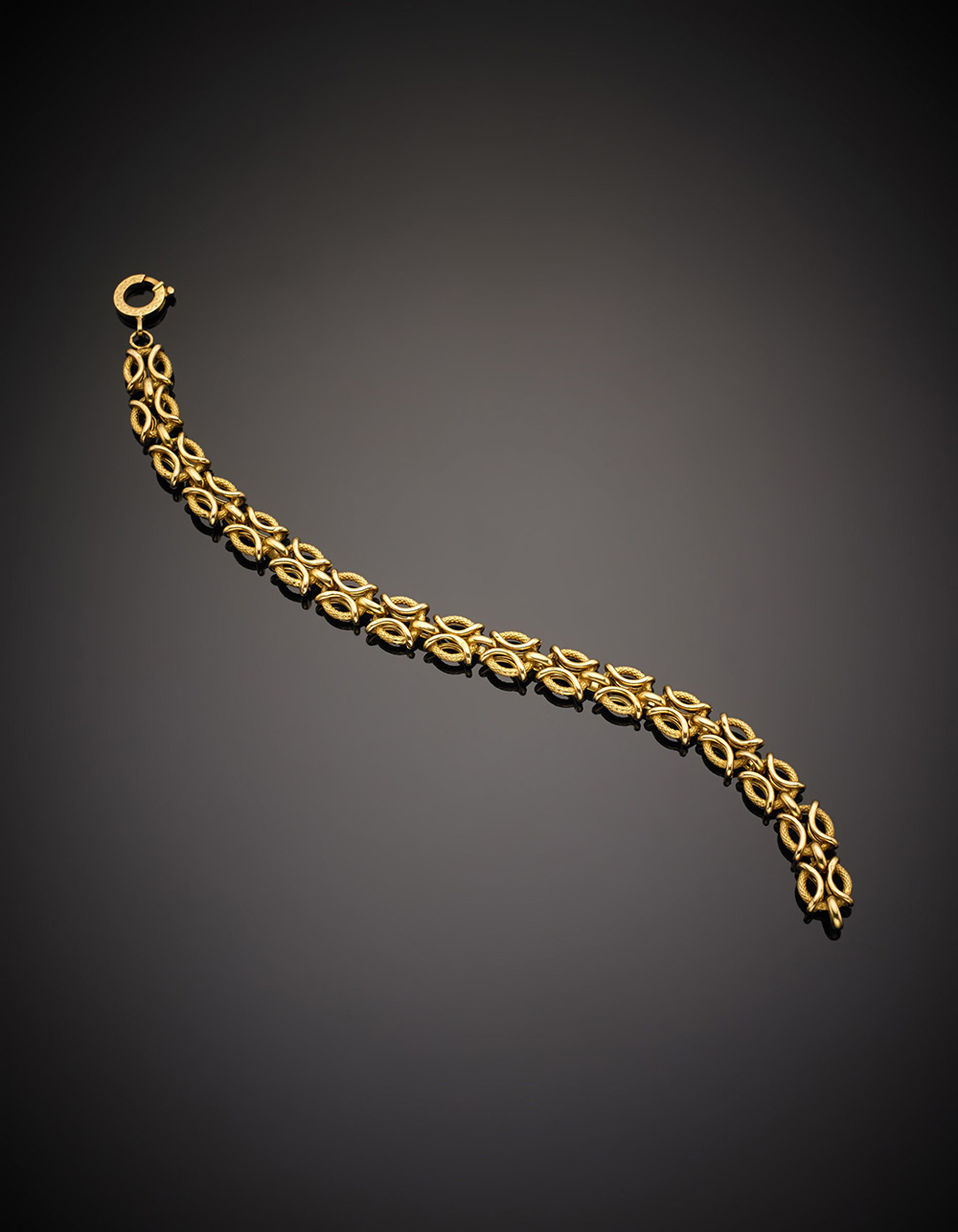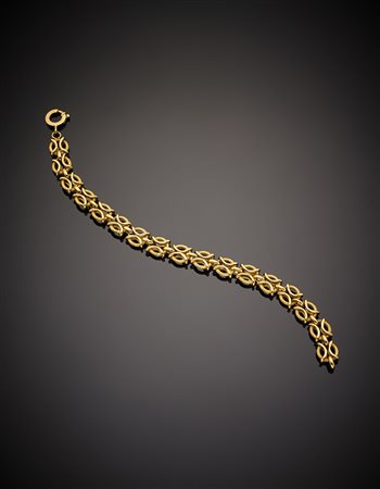 Bracciale modulare in oro giallo in parte cesellato, g.13,50 lungh. cm 20,5 Yellow partly glazed gold modular bracelet, g.13,50 length cm 20,5