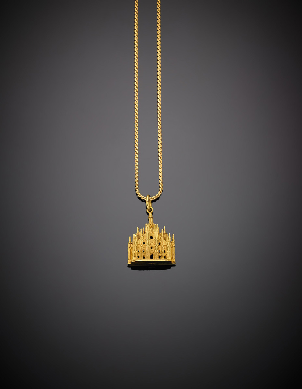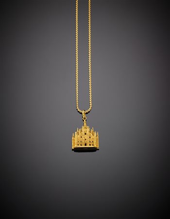 Catenina in oro giallo con pendente a guisa di Duomo di Milano, g.17,80, lungh. cm 60,0 circa Yellow gold linkchain and Milan cathedral pendant, g.17,80 length cm 61 circa