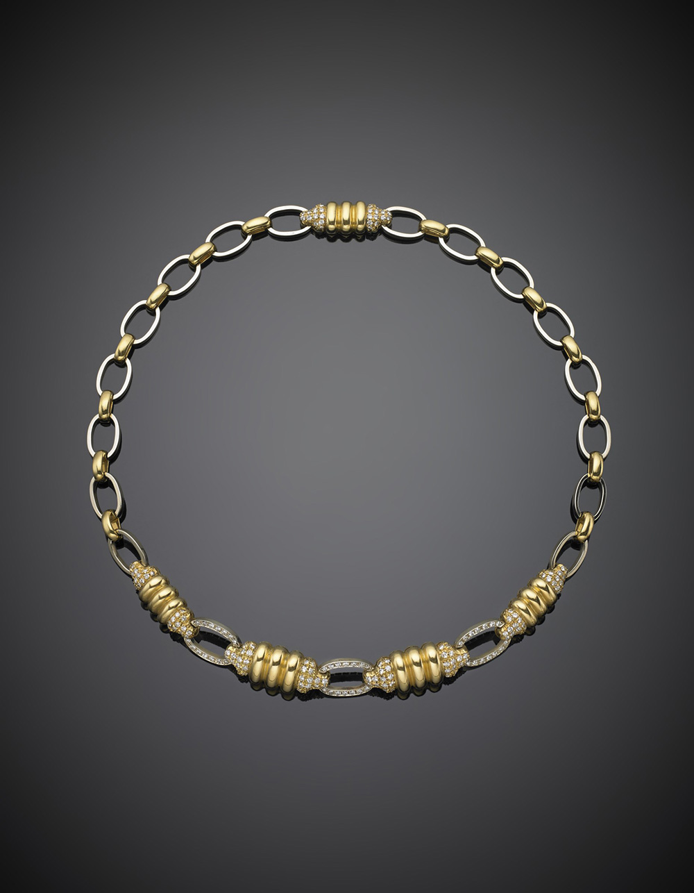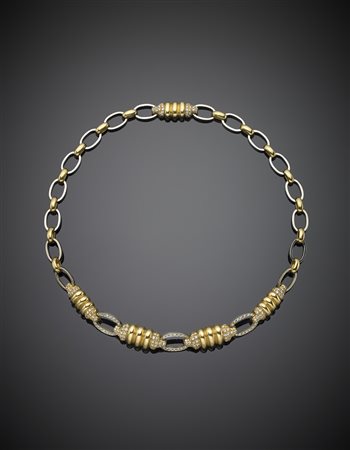 MISSIAGLIA Collier in oro giallo e bianco con diamanti, g.48,10, lungh. cm 39,0 circa MISSIAGLIA Bi-coloured gold diamond necklace g.48,10 length cm 3,0 circa