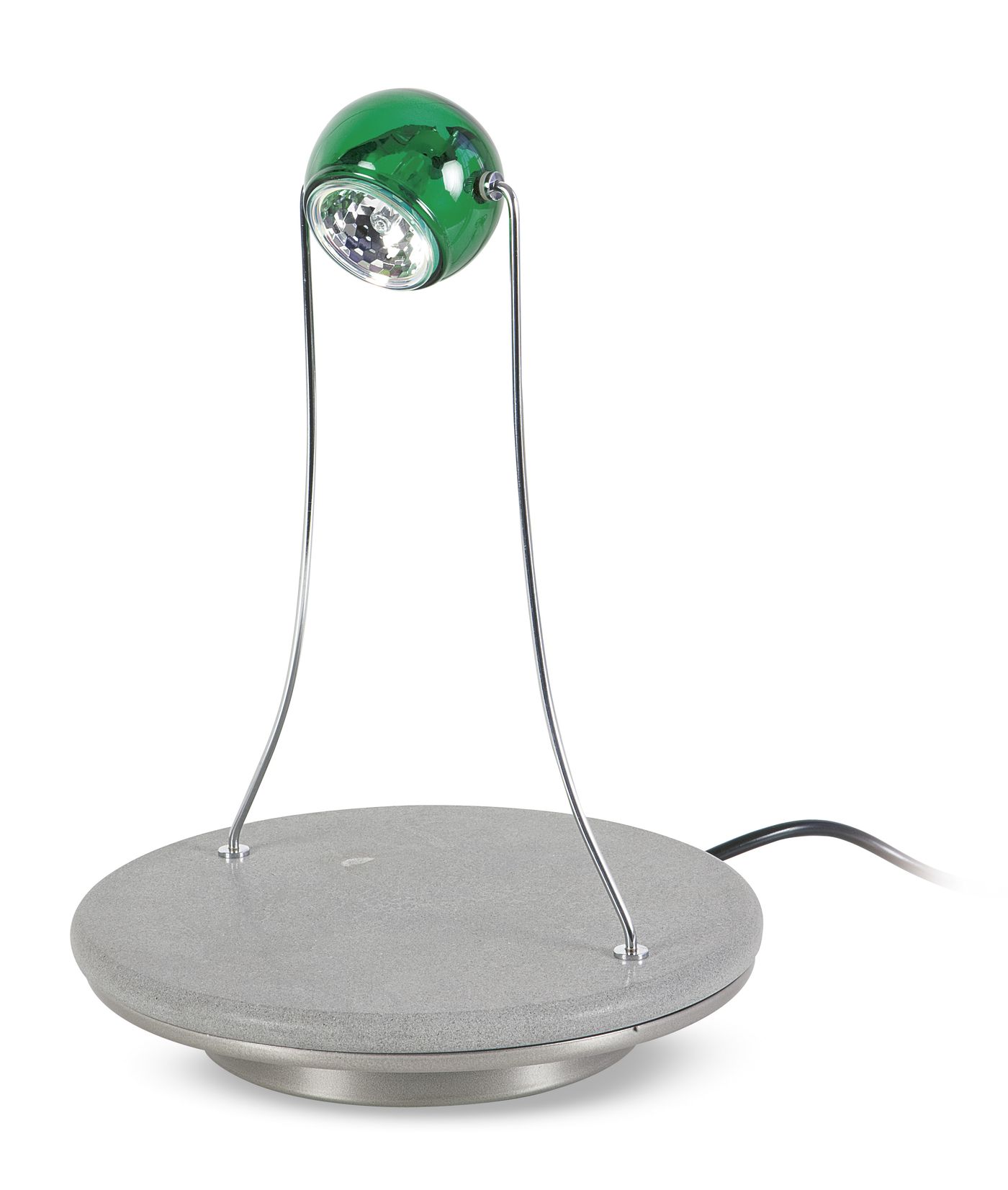 LAMPADA – Gemma, Lampada a bassa tensione. Base in pietra serena e diffusore in vetro soffiato verde. Prod. Skipper 1990 circa. Scatola e imballo originale. H cm 34, diam. cm 25