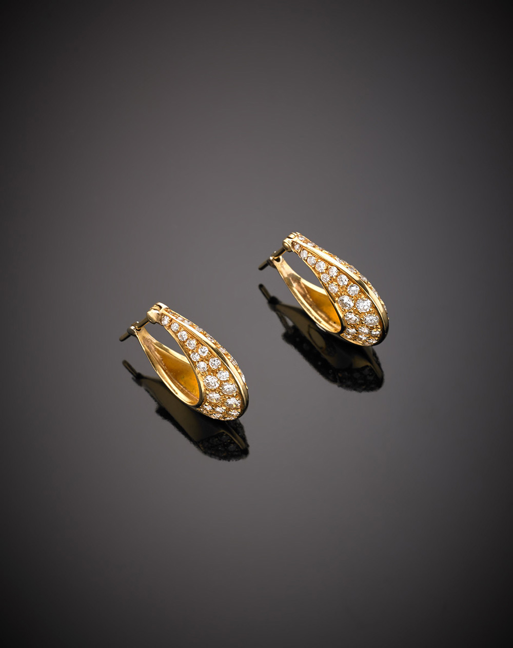 Orecchini in oro giallo e diamanti sagomati a losanga, g.8,20 Yellow gold diamond pavé lozenge earrings, g.8,20