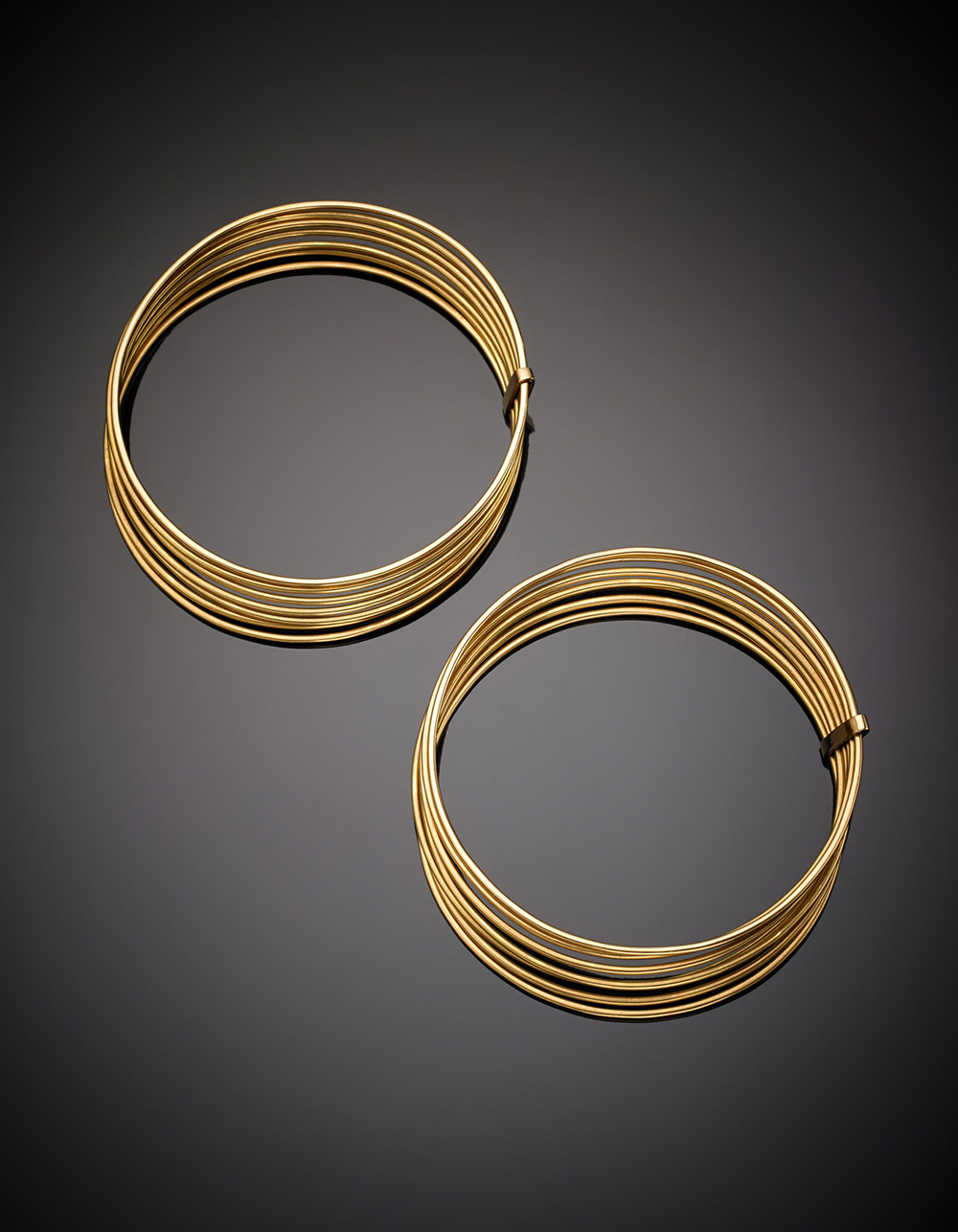 Due bracciali ognuno composto da sette cerchi tenuti da barrette tutto in oro...