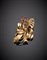 Spilla in oro rosso e bianco con rubini, g.9,20, lungh. cm 5 circa Red gold...