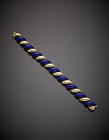 VENTRELLA ROMA Bracciale in oro giallo e smalto guilloché blu, g. 82,00,...