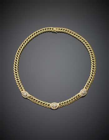 Collier in oro giallo con diamanti ovali e rotondi, diamanti per complessivi ct.2,30 g. 41,50, lungh. cm 43,50 circa Yellow gold linkchain necklace with oval and round diamonds, in all ct.2,30 g.41,50 length cm 43,50 circa