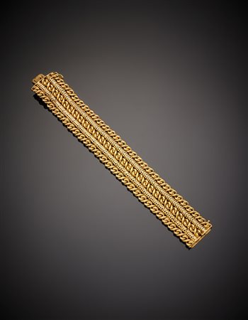 Bracciale a fascia in oro giallo, g.55,60, lungh. cm 19,5, h cm 2,5 circa...