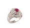 Anello in oro bianco 18kt con incastonato al centro un rubino ovale di carati 1,20 circa circondato da diamanti taglio brillante per carati 1,40 circa, gr. 10.