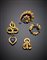 Lotto composto da quattro spille in oro giallo e rosso con smalti blu,...