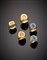 Lotto composto da cinque anelli in oro giallo e pietre tutti incisi con...