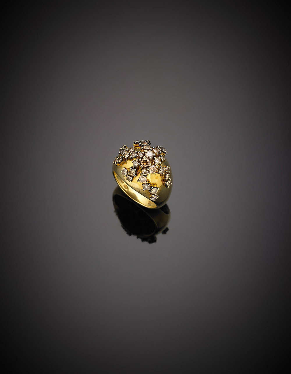 DAMIANI Anello a cupola in oro giallo con diamanti fancy brown, g.17,40, misura 16/56 DAMIANI Yellow gold fancy brown diamond dome ring, g.17,40 size 16/56