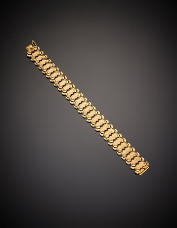 Bracciale modulare in oro giallo con losanghe zigrinate, g.23,80 lungh. cm 17,5 Yellow gold chiselled lozenge modular bracelet, g.23,80 length cm 17,5