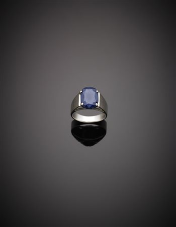 Anello in oro bianco con zaffiro ovale di ct.7,70 circa, g.5,20 misura 12/52...