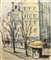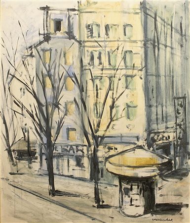 Piero Verbinschak (XX secolo), "Scorcio di cittË", olio su faesite, cm. 55x46, firmato in basso a destra e sul retro.