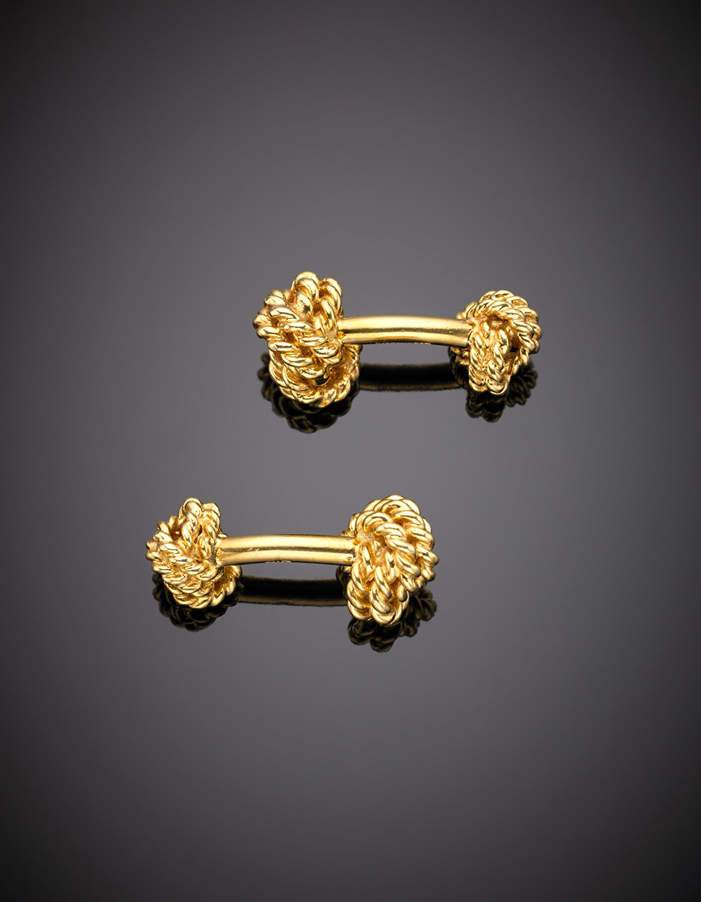 TIFFANY & CO Gemelli in oro giallo a fune con nodi marinai, g.17,30. In...