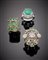 Lotto di tre anelli in oro bianco giallo e argento con diamanti e smeraldi,...