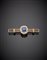 Spilla a barretta in oro giallo e rosa con diamanti rotondi e al centro uno...