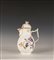 Caffettiera in porcellana dipinta a policromia e decorata a motivo floreale, Meissen, vecchia manifattura, h. cm. 23, (lievi difetti).