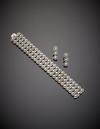 Demi-parure in oro bianco composta da bracciale a fascia ed orecchini...