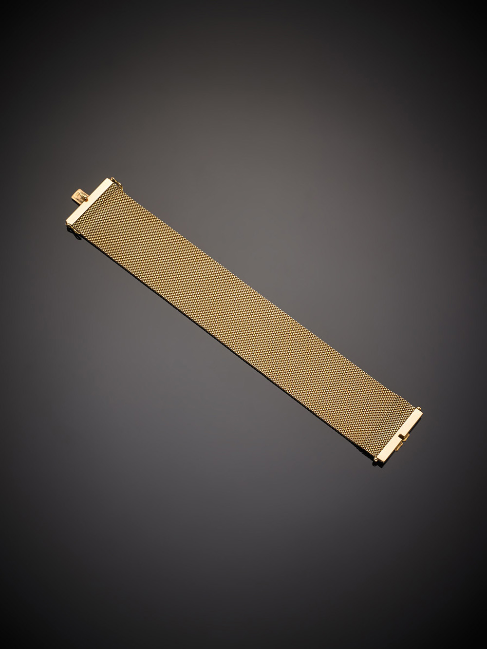 Bracciale a fascia tessuto in oro rosa, g.99,00 circa, lungh. cm 19,5 circa h cm 3 circa. In scatola Spallanzani Milano Pink gold mesh band bracelet, g.99,00 circa length. cm 19,5 circa h cm 3 circa. In Spallanzani Milano case