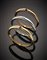 Tre bracciali rigidi in oro a tre colori centrati con diamanti, zaffiri e...