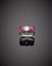Anello in argento con due rubini rotondi sintetici ai lati di un diamante...