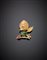 Spilla con uccellino in oro giallo oro 585/1000, rifinita con nefrite, rubini...