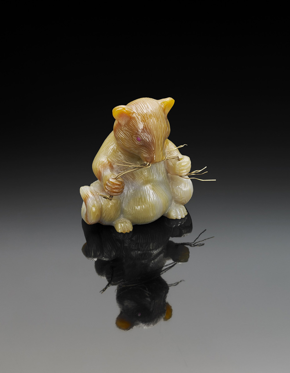 FABERGE' Scultura in agata raffigurante un topo di campagna, con rubini...