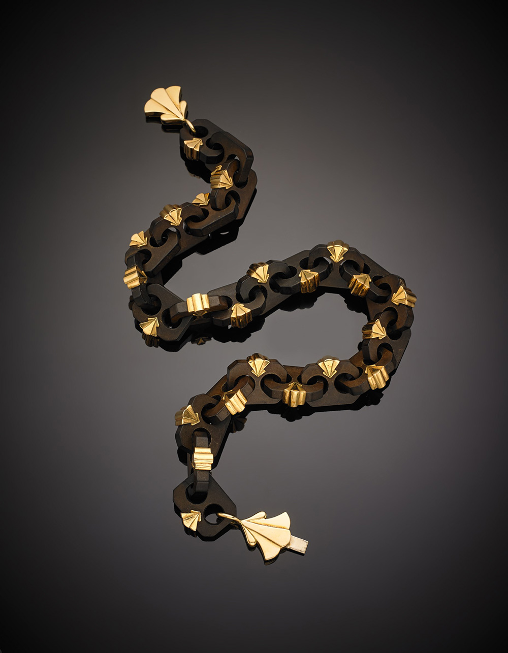 Collier in legno rifinito in oro giallo come la chiusura, g. 114,20, lungh....