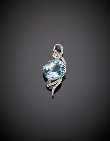 STERN Spilla in oro bianco con diamanti a contornare un'acquamarina forma a...