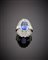 Anello in oro bianco con diamanti a pavè e baguette a contornare uno zaffiro...