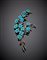 Spilla floreale in oro giallo e argento con turchesi e diamanti g.35,40...