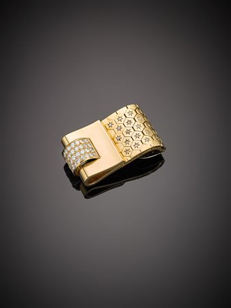 VAN CLEEF & ARPELS Broche in oro giallo e diamanti, a cartiglio con motivo a...