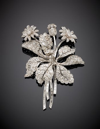 Grande broche in platino a guisa di mazzo di fiori e diamanti per complessivi...