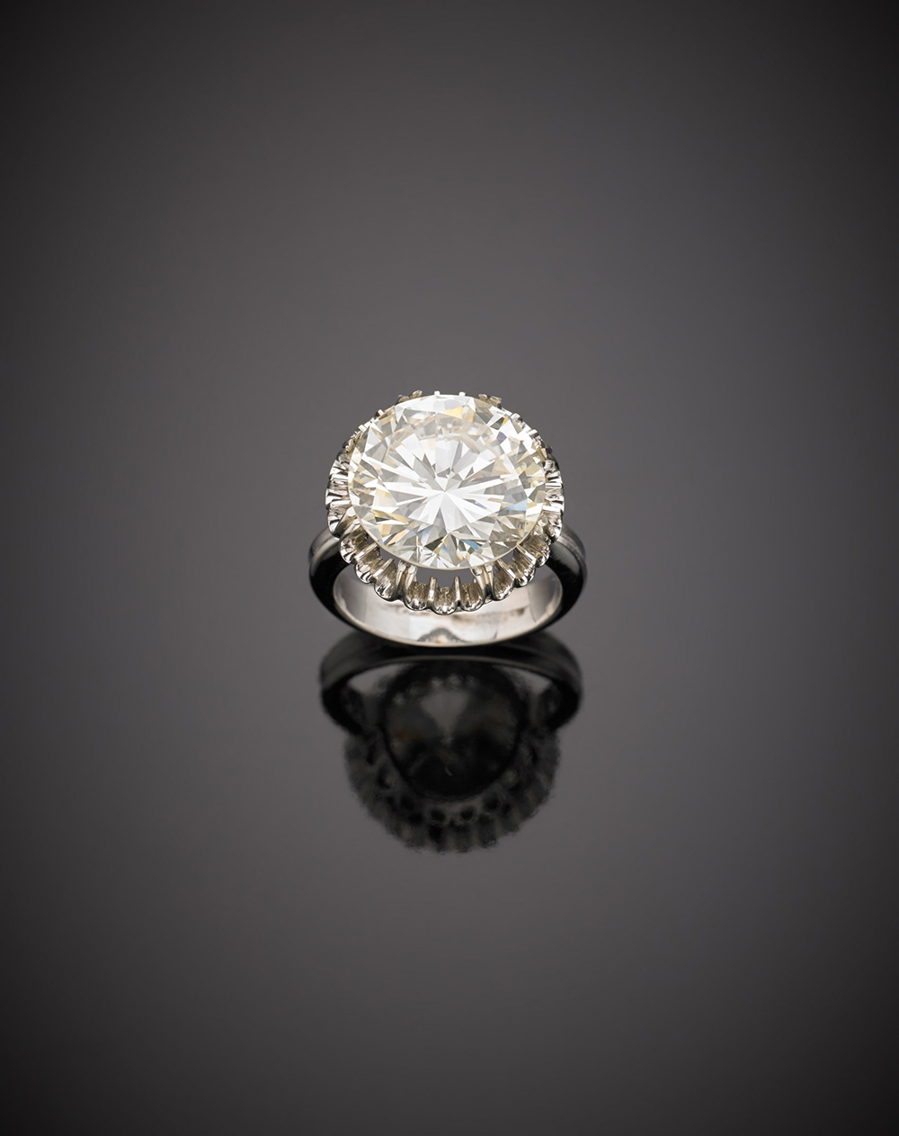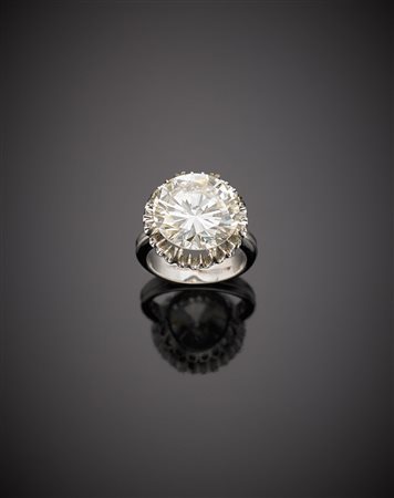 Diamante solitario di ct 9,57 rotondo taglio a brillante moderno europeo con montatura in oro bianco g. 9,10, misura 12/52 Accompagnato da cerificato gemmologico CISGEM n. 5341IAAB del 31/01/2017 Milano Modern european cut round diamond single stone ct.9,57 white gold ring set g.9,10 size 12/52 Appended CISGEM Jewellery Certificate n. 5341IAAB 31/01/2017 Milano