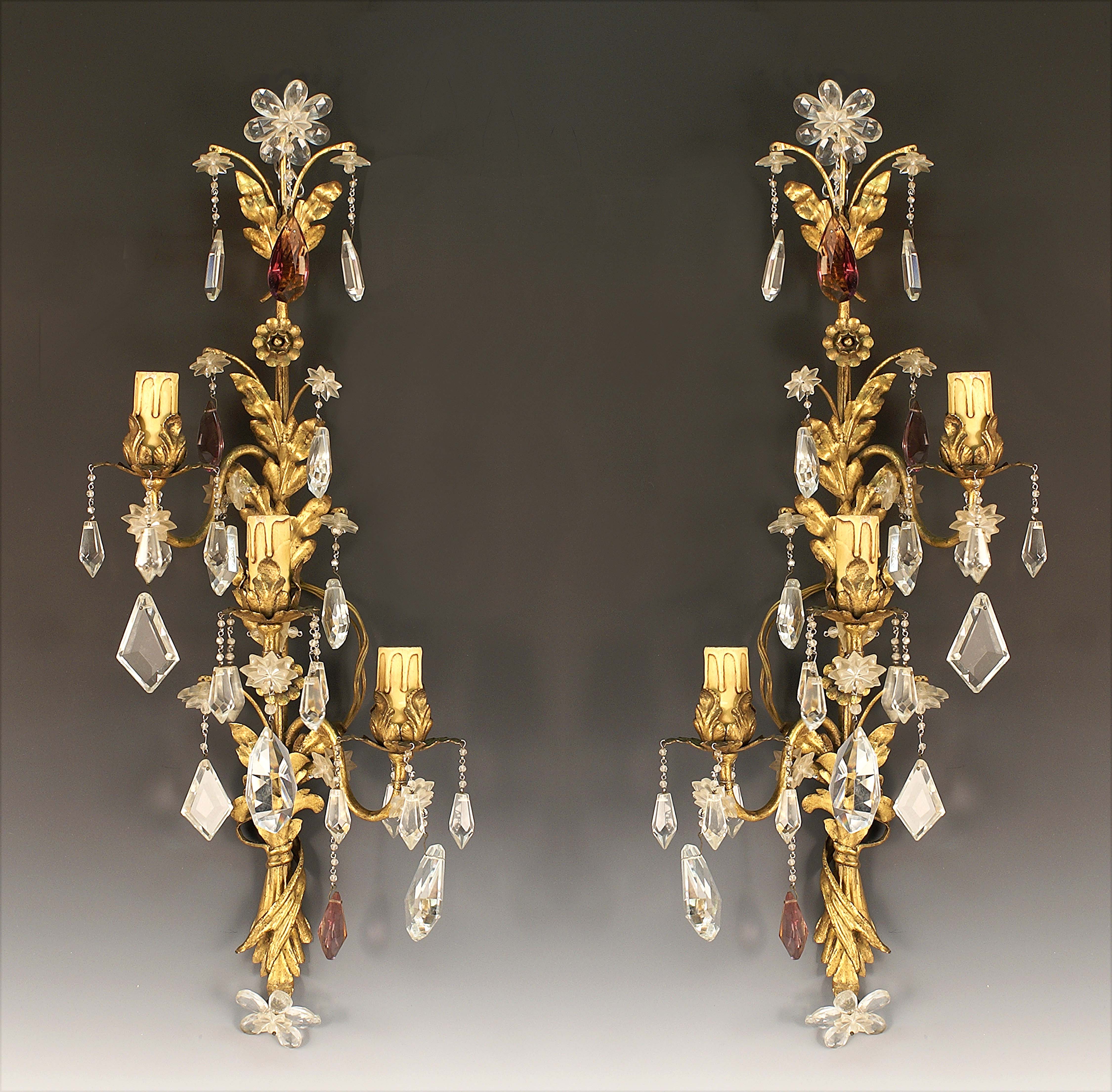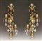 Lotto 695 | Coppia di appliques a tre luci in metallo dorato con elementi in cristallo...