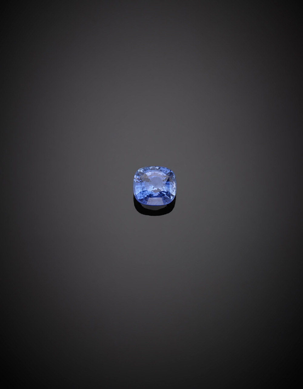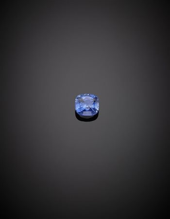 Zaffiro di forma a cuscino, taglio composito di ct. 5,52 Accompagnato da cerificato gemmologico GGTL, GIA Alumni Association n. 50294 del 27/03/2017, che stabiliche che la pietra non ha evidenze da riscaldamento Ct.5,52 cushion shape mixed cut sapphire Appended GGTL, GIA Alumni Association Sapphire Brief No.50294 of 27/03/2017 establishing that this natural corundum has No Indication of Heating
