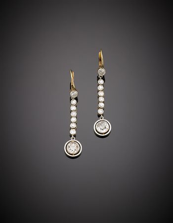 Orecchini pendenti in oro giallo e bianco ognuno con otto diamanti dei quali...