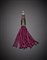 FRED LEIGHTON Pendente in platino, oro giallo e nefrite con diamanti e rubini come la nappa a terminarlo, g. 35,90, lungh. cm 11 circa FRED LEIGHTON Platinum, yellow gold, diamond and ruby nephrite pendant with ruby bead tassel, g. 35,90, length cm 11 circa